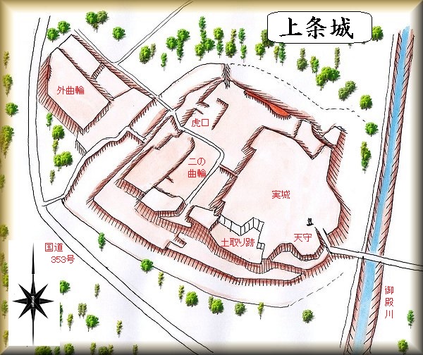 それにしても「かみじょうじょう」ではなく「じょうじょうじょう」とは面白い名称である。如雨露で水でも流しているのかと突っ込みたくなるような名称であるが、茨城県にも同じ読みをする上条城がある。なんとも「じょう」を重ねすぎであり、当時の人は、このような読み方に疑問を感じなかったのであろうか。不思議に感じる。