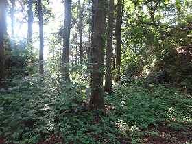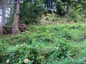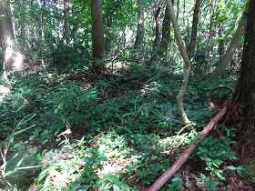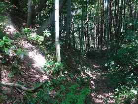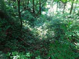 | 3郭は墓地となっている。 | 3郭と北側の山稜との間の堀切。 |