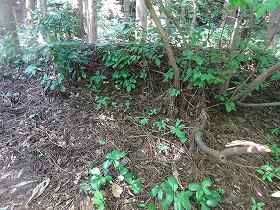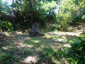 | 1郭の虎口。 | 1郭内部。標柱もあったようだが、倒れて字も読めなくなってしまっている。 |
