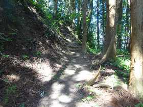 ここから斜面をそのまま登るように遊歩道が付けられているが、これでは当たり前に登って行けてしまう。本来の登城道はもう少し入り組んでいたものであった可能性がある。