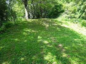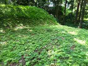 | 堀底から見る2郭城塁。 | 2郭内部。草刈りがされていて見やすい。 |