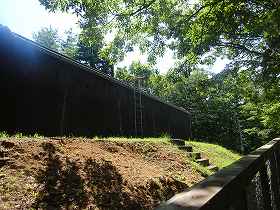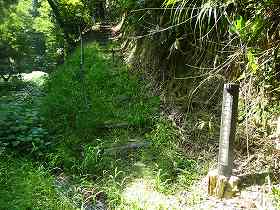 | 南端の堀切部分。 | 切通しの通路を通って行くと、水道施設がある。 |