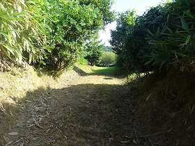 | 実城の南から東側に降りていく通路。 | 実城東側下の枡形。 |