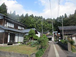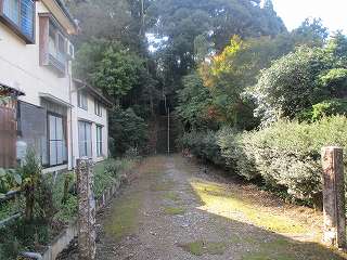 | 南東側に降りたら、車を置いた集会所の駐車場の脇に出た。この民家の間を通っても登って行ける。 | |