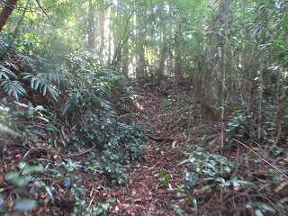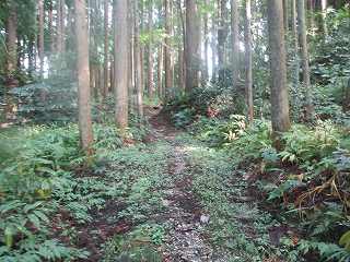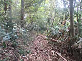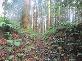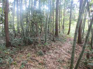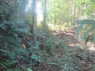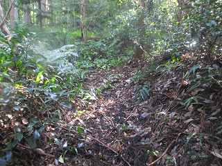 天満宮の東側に切通しの通路が付けられていて、これが東側の山稜奥部まで続いていた。ヤブ漕ぎを覚悟していたのだが、この城はそれなりの道を通って主郭近くまで行くことができた。