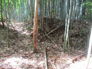 | 帯曲輪も多数造成されている。 | 入り館の虎口と土塁。 |