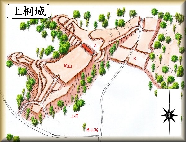 上桐城は、それほど大規模な城郭ではなく、まとまった郭は1郭だけである。とはいえ、土塁や枡形状の空間を配置していることから、やや技巧的な側面も有している城であるといえる。