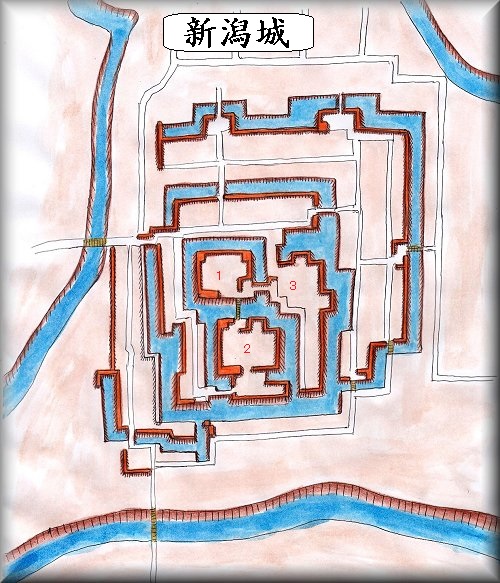 *新潟城の図と思ったのだが、後でよく見たら、1つ上に配置してあった長岡城の図と間違えてしまったかもしれない。