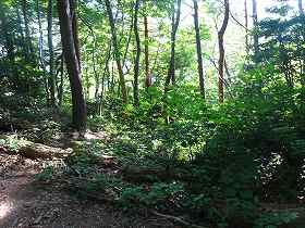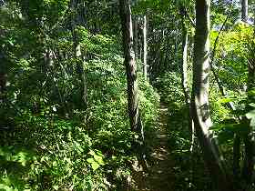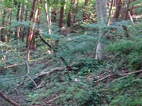 | 尾根を登って降ったところにある2本目の堀切。 | その先の尾根はヤブだらけである。 |