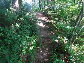 堀切の所から平行移動していくと、道は下りに差し掛かる。この尾根部分を降って行ったところが大土塁と呼ばれているところであるが、実際には土塁というよりも天然の尾根であったと思われる。