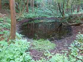 | 瓢箪池。このような山城にある池は珍しい。 | 武者溜り。3段構造になっているのが分かる。 |