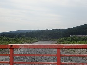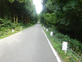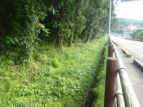 | 温泉橋から遠望する垂水城。 | 北側の道路。この右手のヤブの中に城址がある。 |