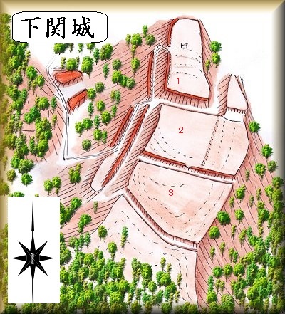 | 下関城の歴史について詳しいことは分からないが、三浦一族であった関氏の居城であったと言われている。 | |