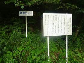| 西端下に案内板と入口表示がある。 | 案内板と入口表示。登城道は途中から分かりにくくなっている。 |