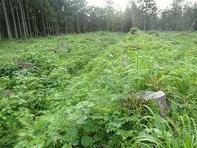 しかし、木を切ったまま放棄されてしまうと、一面の草むらになってしまう。実際に、城内は一面の草むらになってしまっていた。木こそは生えていないものの、このままでは次第にヤブに覆いつくされてしまいそうである。