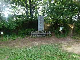 | 本丸の城址碑。 | 本丸北側下の堀切。 |