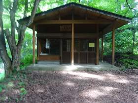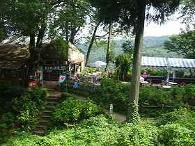 | 蔵屋敷跡。 | 新津曲輪に建てられているアジサイ茶屋。営業中である。こんな山中にお店があるとは思わなかった。 |