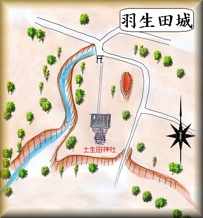 土生田神社が城址なので、この神社を目指して行けばよい。土生田は難読名称だが、これで「はにゅうだ」と読むらしい。