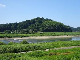 | 川の北側から遠望する渡部城。ここからの比高は50mほど。 | 菅原神社入口。 |
