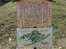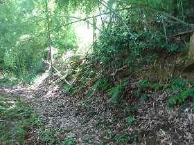 | 案内板には鳥瞰図が描かれている。 | 参道の途中に帯曲輪が何段か見られる。 |