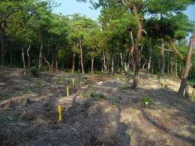 | 内陸部に入り込んだ所にある礎石建物群の跡。この辺が居住区だったのであろうか。 | 1時間近くかけて、やっと振り出しに戻ってきた。写真は角楼の上。 |