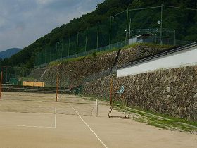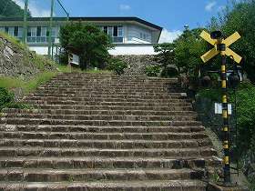 | 高梁高校の周囲には石垣が見事に残されている。土塀もあるのだが、これは復元したものなのであろうか。 | 大手門を上がったところから西側の曲輪を見たところ。現在はグランドとなっているようだ。 |