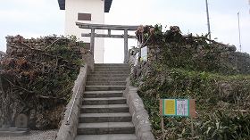 | ロワジールホテルのすぐ西側に残っている三重グスクの城塁。 | グスク内への登り口。内部には神社が祭られている。 |