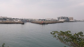 御物グスクは戦闘的な施設というよりも、物資の荷揚げ地点として活用されていたグスクであるという。こちらはgooglemapの航空写真でも大体の形状を確認することができる。陸続きになり一部は破壊されているようだが、大体の部分は残存しているように見えている。すぐそこに見えるのに米軍基地内にあって立ち入りできないというのが何とも残念である。
