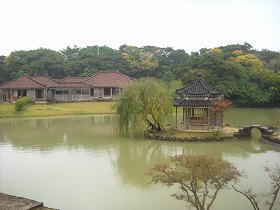 識名園(シチナヌウドゥン)は、首里城の南1kmほどの所にある。王の別邸であった。こちらも世界遺産に登録されているので、道路のあちこちに案内が出ているので、迷うことはないと思う。駐車場も完備している。