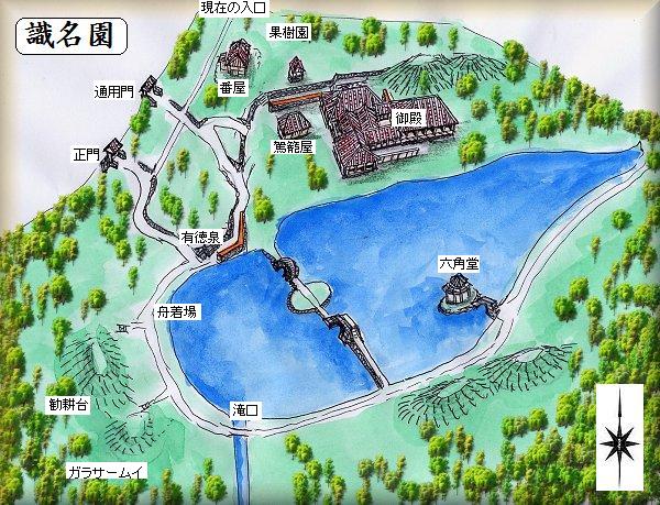 識名園は、王家によって18世紀の終わり頃に造られ、王家一族の保養や外国使節の接待などに利用されたものである。それまでの別邸は首里の崎山にあったが(御茶屋御殿)、首里の東側にあった御茶屋御殿(東苑)に対して、識名園は南苑と呼ばれていた。
