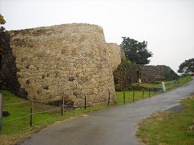 城塁には曲線的な折れが見られ、南側には城塁の張り出し部分も見られる。西洋の城のようである。中央部に正門跡があるが、正門周囲のみが切石を用いた石積みとなっている。