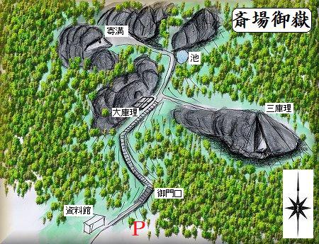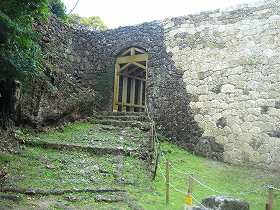 | 岩盤をくり抜いて造られた虎口。 | 内部の石垣。 |