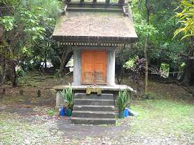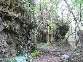 ここで道は2つに分かれるが、まっすぐ上の方に進んでいったところに寄満(ユインチ)がある。岩が上までせり出してきた下に造られた拝所である。