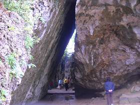 | ユインチ入口近くにある天然岩。古代の遺跡のような雰囲気である。 | サングーイ。巨大な岩の狭間の奥である。 |