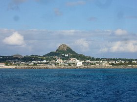 沖縄本部町の本部港からフェリーに乗れば、30分ほどで伊江島に到着する。伊江島は、珊瑚礁の隆起によってできた島で、東西6km、南北2km、人工5千人ほどのわりと小規模な島である。