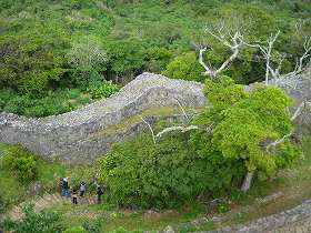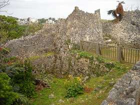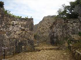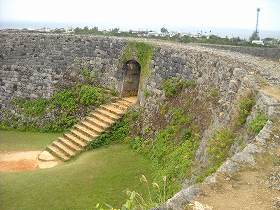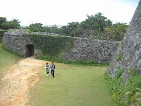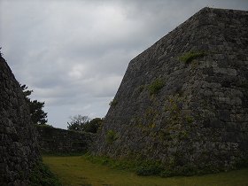 中城城のところで触れている、護佐丸の築いた城である。やはり見事な石垣によって曲線のラインが描かれ、死角がないような構造を目指している。石垣は乱積みに近いが、隙間なくきちんと積んでいるのが印象的で、すぐれた構築技術を感じさせるものである。護佐丸の出自についてはよく分からないことが多いのだが、もともと読谷村あたりにいた豪族だったのではないかといわれる。北山征討に協力して功績を挙げた護佐丸は、あためてこの地を与えられ、この座喜味城を築いたのだといわれる。さらに後、中城城を築いてその勢力は絶大なものとなるが、後に阿麻和利の陰謀にあって殺害されてしまうこととなる。