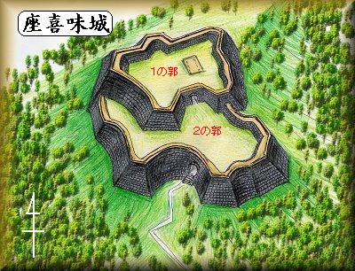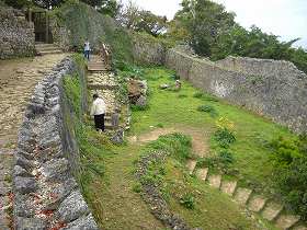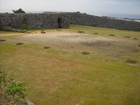 意外なのは、城内がかなり狭いということである。1の郭、2の郭の2郭構造となっているが、両方あわせても面積はさほどなく、たいした人数を収容することもできなさそうである。イメージ的には本州の単郭方形館くらいの収容能力しかなさそうに感じてしまう。護佐丸は沖縄を代表する武将であるとはいえ、それほどの動員兵力を持ってはいなかったというように理解していいのだろうか。