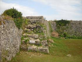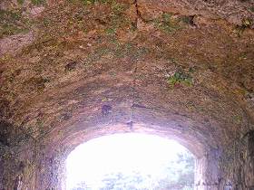 | 石門内部。アーチ状に石が組まれている。 | 2郭内部の城塁。 |