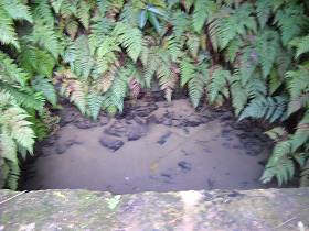 | 正門から南郭に続く通路。 | 井戸曲輪内部にある井戸。湧き水が溜まるシステムになっているようだ。 |