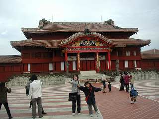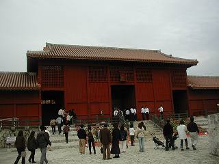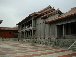 | 奉神門。櫓門ってわけである。ここを入ると正殿前の広場になる。 | 正殿。公式行事などはこの前で行われていた。 |