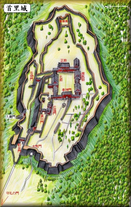 首里城は沖縄を代表する城(ぐすく)であり、つい近代まで日本帝国陸軍の司令部として用いられていた。しかし、そのために太平洋戦争末期の沖縄戦に際して、陸空から米軍に攻撃されて、正殿はもちろん、石垣の多くもひどく破壊されてしまった。しかし、昭和の末期から平成にかけて復元工事が順次行われることにより、次第に往時の雰囲気を取り戻しつつある。沖縄の人が誇りとする城らしく、城内はきれいに整備され、地元の人々に大切にされている城であるという印象を受ける。