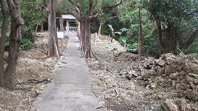 神社よりも南側の部分にも細長く平場が延びているようだが、ヤブ化しているので内部探索はしていない。何しろこのグスクのあちこちには「ハブに注意」の立札が掲げられており、かなりビビってしまうのである。こんな市街地の中でそうそうハブに遭遇することもないとは思うのではあるが、看板があるくらいだから、やはりどこかにいることはいるのであろう・・・と思ってしまう。