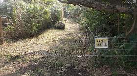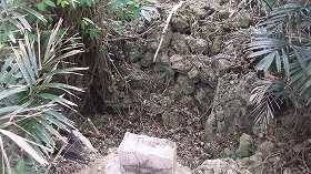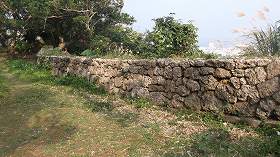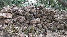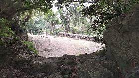 | 南側には尾根が長く延びているが、ハブがいるらしく、途中までしか探索できなかった。 | 入口の石垣を内部から見たところ。 |