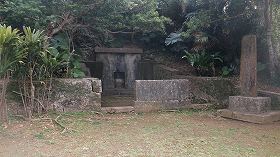 | 一番庭内部。 | ようどれから浦添グスクへ。城内入口の手前脇にある伊波普猷の墓。 |
