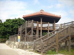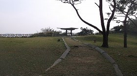主郭内部の北側の斜面に沿いに展望台が設置されている。下の都市部から見ると比高50mほどはあるので、浦添市内を一望することができるようになっており、なかなかいい場所である。のんびりと時間を過ごしたくなるような場所だ。