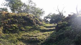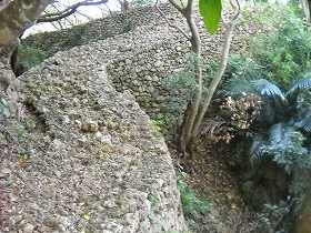 | 郭内部の石垣。 | 東側の帯曲輪の石垣。 |