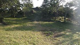 | 1郭の虎口。この城の虎口は坂虎口になっているものが多い。 | 1郭虎口から見る3郭内部。 |
