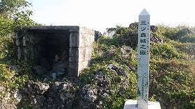 | 1郭内部。正面奥には物見台がある。 | 物見台にある拝所。 |