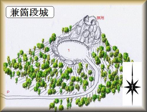 兼箇段城は、沖縄自動車道沖縄北ICの東側1kmほどの所にある。比高30mほどの独立した小山である。この辺りは他に目立った山がないので、近くまで来ると「おそらくあれだろう」という山が見えてくる。