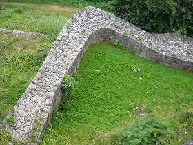 | 西側の城塁。かなり雑な積み方のものである。 | 東門を内部から見たところ。 |